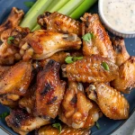 These wings pair well with a variety of sides like celery and carrot sticks, a fresh salad, or even potato wedges for a complete meal.