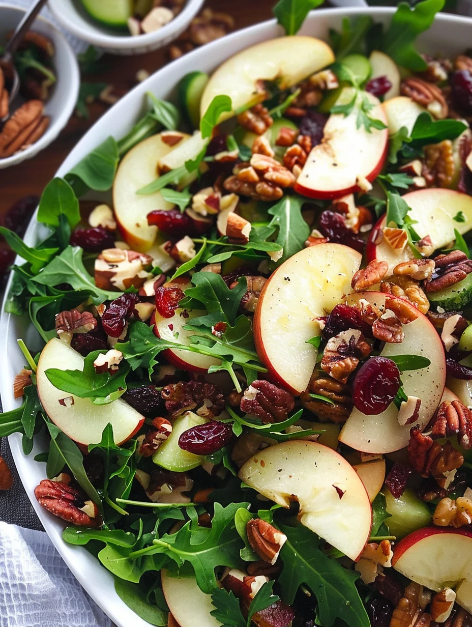 4. Beautiful Presentation: The vibrant colors of the apples, cranberries, and greens create an eye-catching dish.