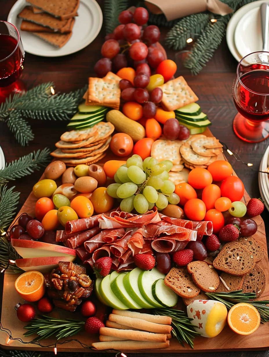 5. Garnish for Festivity: Use Christmas-themed decorations, like small ornaments or fairy lights, around the board for added flair.