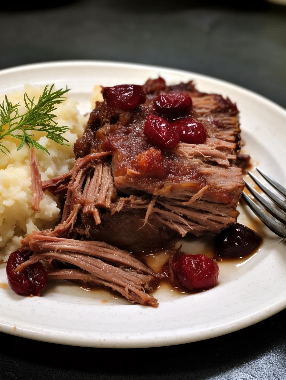 4. Leftover Ideas: If you have leftovers, consider shredding the meat and using it for sandwiches, salads, or on top of baked potatoes. The cranberry sauce adds a unique flair to all these options.