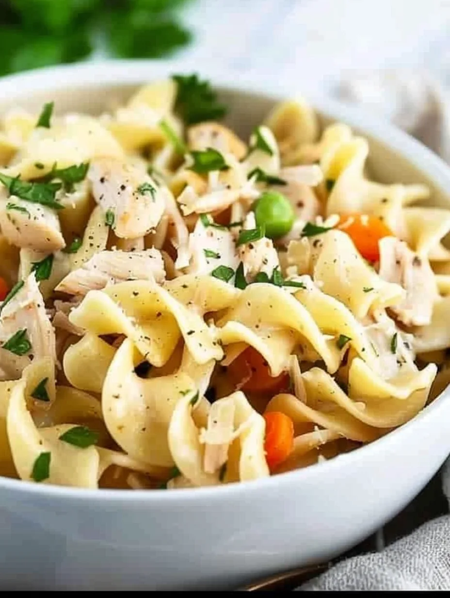 1. Presentation: Serve in deep bowls to showcase the creamy noodles and chicken. A sprinkle of parsley adds a pop of color.
