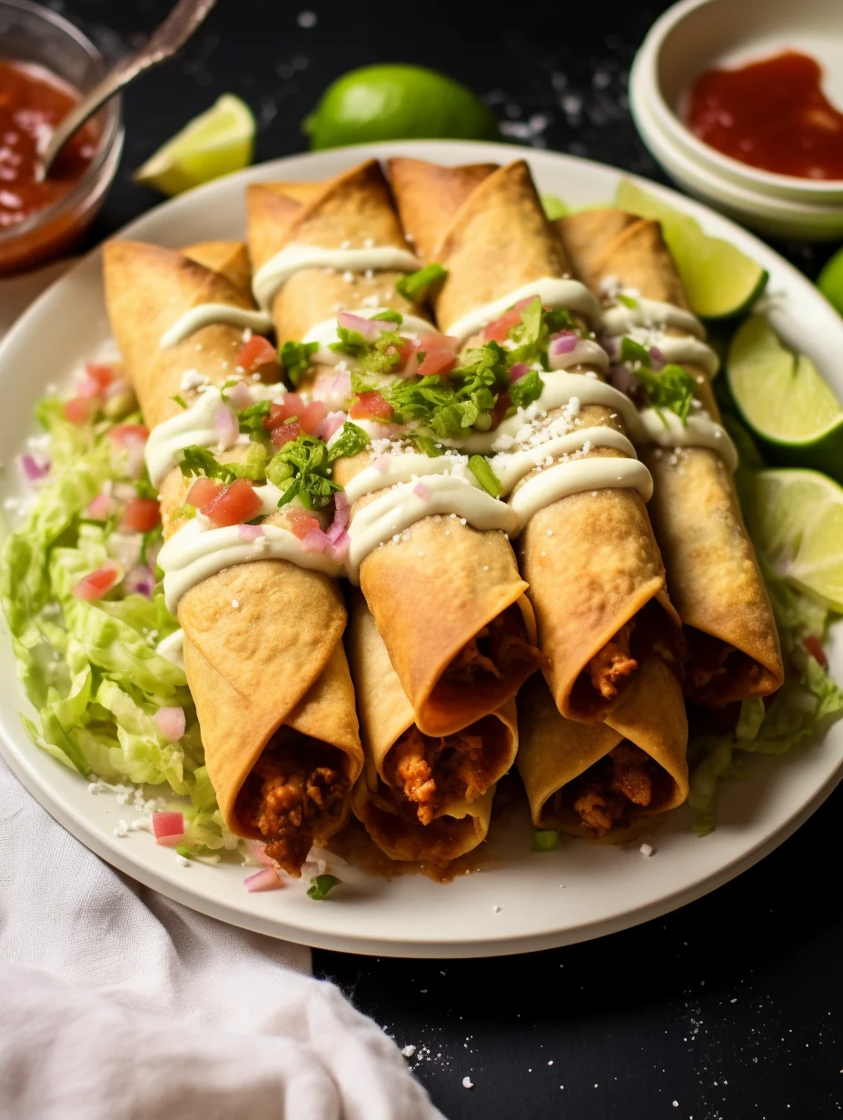 1. Appealing Plating: Arrange the taquitos on a platter, leaning them against each other for a stylish look.
