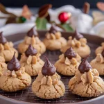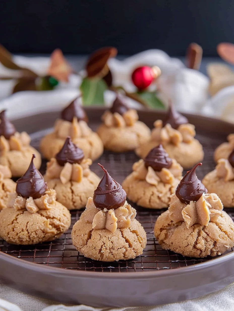 8. Add Chocolate Kisses: Remove the cookies from the oven and immediately press a chocolate kiss into the center of each cookie. Allow them to cool on the baking sheets for about 5 minutes.
