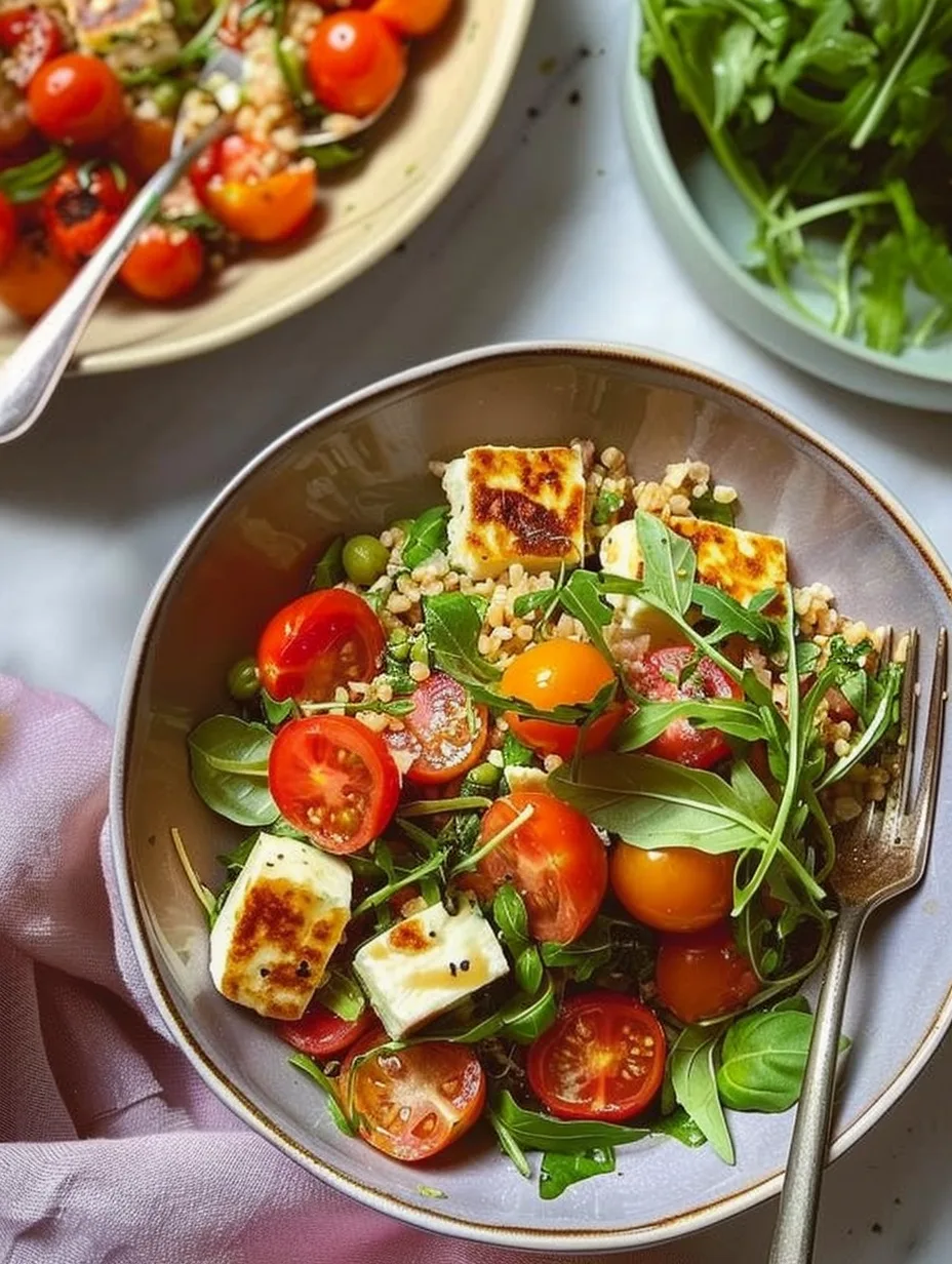 3. Flavor Explosion: The contrast of flavors—from the salty halloumi and sweet tomatoes to the earthy farro—creates an incredible taste sensation.