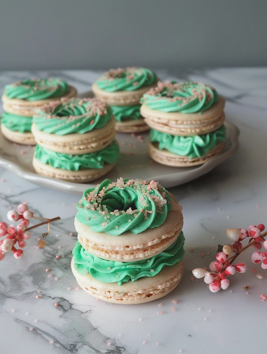 1. Chocolate Wreath Macarons: Add cocoa powder to the almond flour for a chocolatey twist.